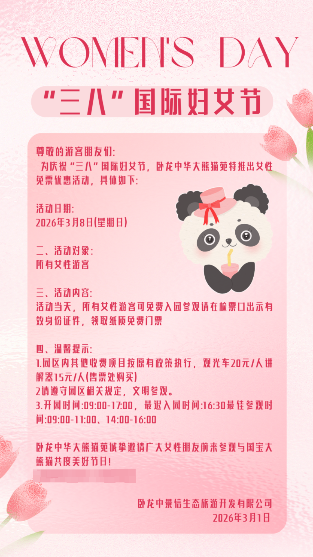 九寨沟景区定于2026年3月8日对所有女士开展免门票活动,诚邀您共赴山水之约!具体内容如下: